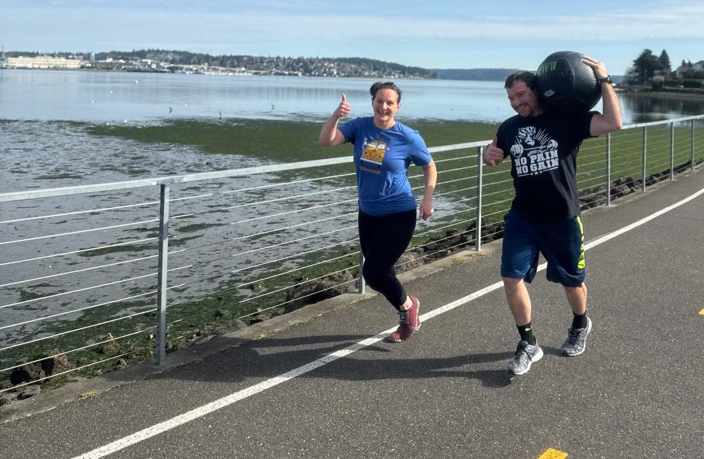Warm-up 2:00 bike, row, ski 3 Sets: 100 Meter jog10 Banded good mornings10 Halo squats10 Mountain climbers WOD Teams of two, one person working at a time, complete a 25 minute AMRAP: 400 Meter medicine ball run 20/1410 Deadlifts 275/155 (switch every 5)20 Burpees (switch every 10)30 Wall balls 20/14 (switch every 15) -Both partners complete the run, switch off carrying medicine ball as needed